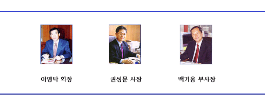 이영탁 회장은 재경원과 교육부 등을 거친 공무원 출신입니다. 따라서 언뜻 보아도 정부 관련 연결통로라는 것을 알 수 있습니다. 권성문 사장은 전형적인 금융계 출신의 M&A전문가입니다. 현재는 미국에 머물면서 글로벌 사업 추진 업무를 맡고 있습니다. 백기웅 부사장은 공대 출신에 제조업을 거친 관리형 인물입니다. 권성문 사장이 떠난 자리를 맡으면서 내부 구조조정과 관리, 유지를 맡고 있습니다.