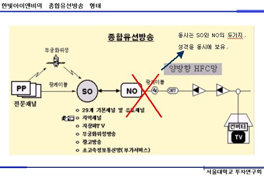 한빛아이앤비가 타SO업체들과 차별화 되는 점은 자체 전송망을 보유하고 있다는 것입니다. 전송망을 까는데는 상당한 초기 비용이 소요됩니다. 한빛아이앤비의 설립자본금도 125억원으로 다소 큰 편이었는데 이 전송망의 구축에 대부분의 자금이 쓰였습니다.