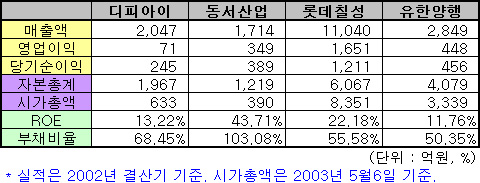 디피아이는 노루표 페인트 브랜드를 보유한 국내 2위의 도료업체다. 지난 4월 증권거래소가 디피아이를 PER 기준으로 가장 저평가된 기업으로 꼽았을 정도로 기업가치에 비해 현저한 저평가 상태에 놓여있다. 작년 기준으로 PER가 1.55, PBR이 0.2에 불과하다. 다시 말해 지금 디피아이를 통째로 사는 값이 이 회사가 1년6개월간 벌어들이는 순이익에 불과할 뿐 아니라 사는 순간 통째로 산 값의 5배에 해당하는 자산을 가질 수 있다는 것을 의미한다.
