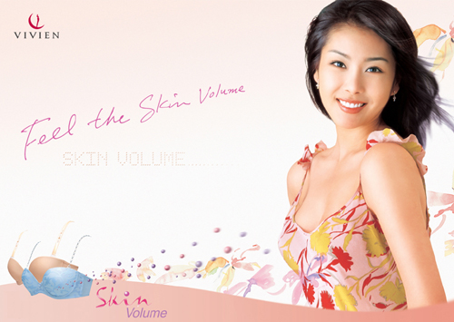 세련된 방 안에서 탤런트 한은정이 거울 앞에 서있다. 'I Love You For Sentimental Reasons' 라는 노래에 맞춰 민소매의 짧은 남빛 실크 원피스를 입고 살짝살짝 몸을 흔들면서 섹시한 춤을 춘다. 풍만한 가슴선이 원피스 위로 드러나고 옆이 트인 원피스 사이로는 언뜻 허벅지가 보인다. 그리고 한은정의 독백이 들린다. "한듯 안한듯, 나두 속았다. 내가 했던가? 내 피부를 닮았다" 이것은 비비안의 2003년 신상품인 스킨볼륨브라의 광고이다.