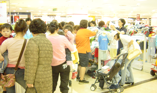 3시경 삼성플라자의 1층은 고객들로 북적거렸다. 특히 어린이날 행사를 하고 있어 공연장 앞에는 많은 사람들이 있었다. 그러나 막상 매장으로 들어가자 한산한 느낌을 줄 정도로 사람들의 발길이 적었다. 사람들이 많은 곳은 통로에 자리잡은 기획상품 코너와 식품 코너 정도였다. 특히 신사복과 여성복 층은 종업원들이 무료함을 느낄 정도로 손님이 적었다. 경기침체에 영향을 덜 받는다고 알려진 명품코너도 한산하긴 마찬가지였다.