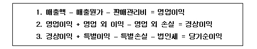 손익계산서는 크게 매출액, 영업이익, 경상이익, 당기순이익으로 살펴볼 수 있다.