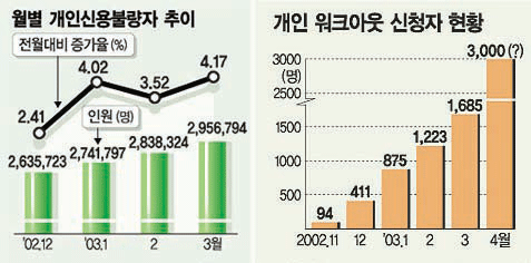하지만 올해 들면서 상황이 180도 바뀌었다. 신용카드는 재앙이라는 말과 동의어로 쓰일 만큼 주식시장과 국가경제를 압박하는 존재가 되어버렸다. 신용카드사가 발행한 카드채는 채권시장에서 정크본드로 전락했고 주식시장에서는 유상증자로 대규모 자금을 끌어가는 부실기업이 된 것이 현실이다.