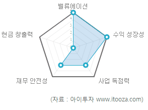 중장기적으로 이익 성장률이 높아 고성장주에 속하며 재무 안전성은 보통으로 위험은 높지 않은 편이다. 또한 소비자 독점력이 보통으로 산업내 경쟁이 심화되면 수익성이 하락할 가능성이 있다.