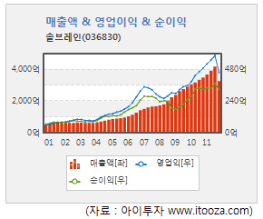 * 매출액, 영업이익, 순이익은 2011년 1월~9월 누적, 단위는 억원, K-IFRS 개별 재무제표 기준.