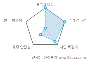 다만, 현금창출력은 0점을 기록하고 있는데, 이는 잉여현금흐름이 순이익보다 적으며, 매출액 대비 잉여현금흐름 비율도 (-)를 기록하고 있기 때문이다. 부채비율이 137%로 100%보다 높고, 자산 대비 차입금 비중이 41%로 높은 것을 감안해 재무안전성도 2점을 받았다.