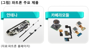 파트론은 휴대폰에 들어가는 다양한 부품을 만드는 회사다. 휴대폰용 부품이 매출의 65%를 차지하며 나머지는 가전제품이나 내비게이션에 사용된다. 파트론의 휴대폰용 부품 매출을 이끄는 건 카메라모듈과 외장형 안테나다. 삼성전자102,900원, ▲3,600원, 3.63%, 팬택, LG전자86,250원, ▲1,050원, 1.23% 등 대형 휴대폰 제조사가 주 매출처다.