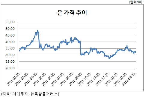 은가격은 최근 지속적으로 약세를 보여 1월 19일 이후 다시 30달러대로 내려왔다.