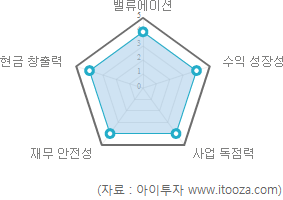 주식MRI는 아이투자에서 자체 개발한 실시간 종목분석 도구다. MRI 종합 점수는 수익성장성과 재무안전성 뿐만 아니라 기업의 이익 지속성을 가늠할 수 있는 사업독점력과 적정주가 수준까지 함께 고려해 판단한다. 주식MRI 종합 점수는 25점이 최고 점수이며 높을수록 저평가 우량 기업이다. 또한 종합점수가 높을수록 5각형 모양의 도형 내부가 가득찬 그물 형태로 나타난다.