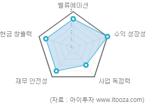 주식MRI는 아이투자에서 자체 개발한 실시간 종목분석 도구다. MRI 종합 점수는 수익성장성과 재무안전성 뿐만 아니라 기업의 이익 지속성을 가늠할 수 있는 사업독점력과 적정주가 수준까지 함께 고려해 판단한다. 주식MRI 종합 점수는 25점이 최고 점수이며 높을수록 저평가 우량 기업이다. 또한 종합점수가 높을수록 5각형 모양의 도형 내부가 가득찬 그물 형태로 나타난다.