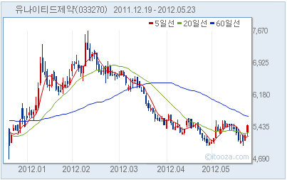 23일 오전 11시 30분 현재 유나이티드제약은 전일보다 3% 상승한 5410원에 거래되고 있다. 이 회사의 주가는 지난 2월 9일 7670원으로 올해 최고가를 기록한 후 하락세다.
