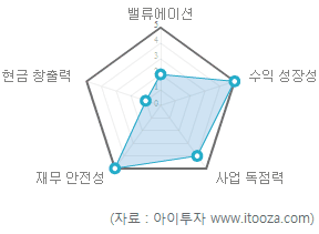 다만, 현금 창출력이 1점으로 낮다. 이는 실제 사내로 유입되는 현금인 영업활동현금흐름이 장부상 수치인 순이익보다 작고, 재무활동현금흐름에서 (+)를 기록한 점 등이 반영된 결과다.