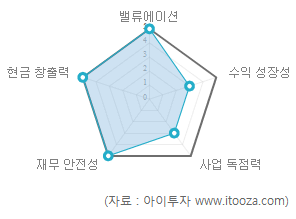 중장기적으로 이익 성장률이 시장평균으로 중간성장형 기업에 속하며 재무 안전성은 높아 안전한 편이다. 또한 소비자 독점력이 보통으로 산업내 경쟁이 심화되면 수익성이 하락할 가능성이 있다.