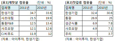 [즉시분석] 한성기업 9%↑, 게맛살 점유율 1위 기업