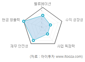 재무 안전성은 높아 안전한 편이며 소비자 독점력이 보통으로 산업내 경쟁이 심화되면 수익성이 하락할 가능성이 있다.