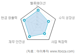 중장기적으로 이익 성장률이 시장평균으로 중간성장형 기업에 속하며 재무 안전성은 높아 안전한 편이다. 또한 소비자 독점력이 보통으로 산업내 경쟁이 심화되면 수익성이 하락할 가능성이 있다.
