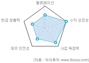 주식MRI는 아이투자에서 자체 개발한 실시간 종목분석 도구다. MRI 종합 점수는 수익성장성과 재무안전성 뿐만 아니라 기업의 이익 지속성을 가늠할 수 있는 사업독점력과 적정주가 수준까지 함께 고려해 판단한다. 주식MRI 종합 점수는 25점이 최고 점수이며 높을수록 저평가 우량 기업이다. 또한 종합점수가 높을수록 5각형 모양의 도형 내부가 가득찬 그물 형태로 나타난다.