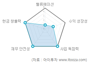 재무 안전성은 높아 안전한 편이며 소비자 독점력이 높아 경기 변동에 관계 없이 현재의 수익성을 유지할 가능성이 높다.