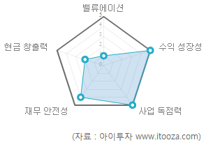 2점을 기록한 현금 창출력은 영업활동 현금흐름이 순이익보다 적고, 매출액 대비 잉여현금흐름 비율이 7% 미만이라는 점 등이 반영됐다.
