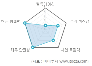중장기적으로 이익 성장률이 시장평균으로 중간성장형 기업에 속하며 재무 안전성은 높아 안전한 편이다. 또한 소비자 독점력이 보통으로 산업내 경쟁이 심화되면 수익성이 하락할 가능성이 있다.