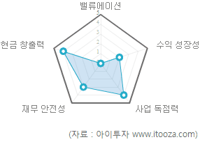 중장기적으로 이익 성장률이 시장평균으로 중간성장형 기업에 속하며 재무 안전성은 보통으로 위험은 높지 않은 편이다. 또한 소비자 독점력이 높아 경기 변동에 관계 없이 현재의 수익성을 유지할 가능성이 높다.
