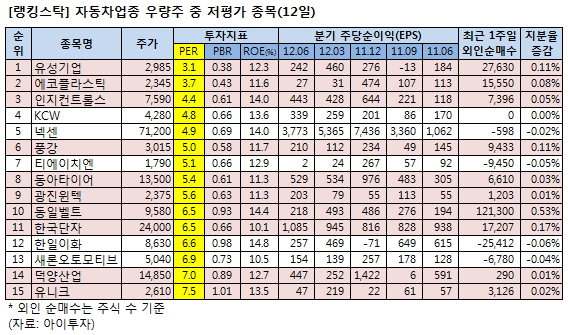 [랭킹스탁] 저평가 우량주 15선-자동차업종
