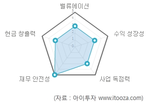 주식MRI는 아이투자에서 자체 개발한 실시간 종목분석 도구다. MRI 종합 점수는 수익성장성과 재무안전성 뿐만 아니라 기업의 이익 지속성을 가늠할 수 있는 사업독점력과 적정주가 수준까지 함께 고려해 판단한다. 주식MRI 종합 점수는 25점이 최고 점수이며 높을수록 저평가 우량 기업이다. 또한 종합점수가 높을수록 5각형 모양의 도형 내부가 가득찬 그물 형태로 나타난다.