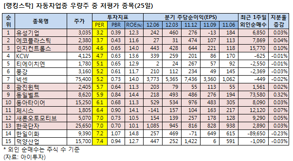 [랭킹스탁] 저평가 우량주 15선-자동차업종