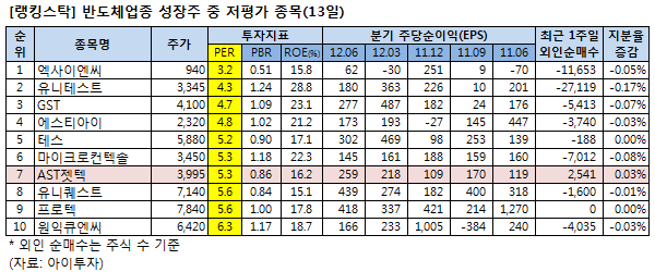 [랭킹스탁] 미인주(고성장 저평가) 10선-반도체업종