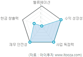 다만 현금 창출력 점수가 2점으로 낮다. 이는 3분기 연환산 기준(최근 4분기 합산) 재무활동 현금흐름이 플러스를 기록했고, 잉여현금흐름비율이 아이투자 기준이 7%에 미치지 못한 점이 반영된 결과다.