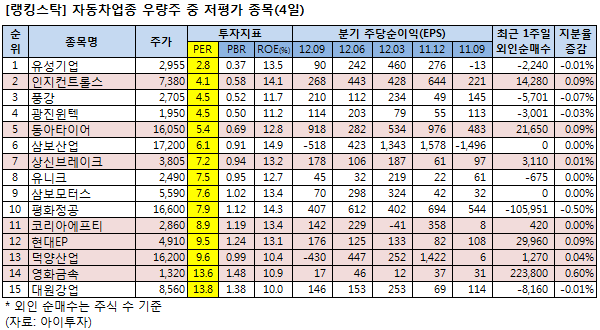 [랭킹스탁] 저평가 우량주 15선-자동차업종