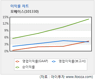 | 모베이스 | 13,500원 | ▲500원 (3.9%) | 671 | 21 | 14 | 8.8 | 1.50 | 17.1% |