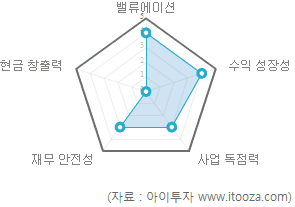 다만 현금 창출력 점수가 0점으로 낮은 평가를 받았다. 지난해 3분기 연환산 기준 영업활동 현금흐름이 마이너스를 기록했고, 재무활동 현금흐름이 플러스를 기록한 점 등이 반영됐다.