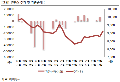 최근 기관은 루멘스에 대한 투자행보를 바꿨다. 지난달 말부터 순매도를 지속해오던 기관은 이달 9일부터 루멘스 담기에 나섰다. 최근 6일(거래일 기준) 간 기관은 루멘스 주식 34만7928주(0.82%)를 순매수했다.