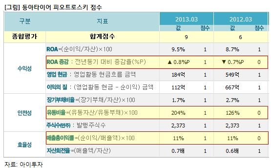 [미리분석] 동아타이어, 피오트로스키 점수 '만점'