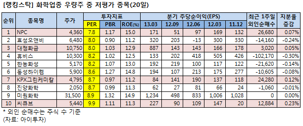 [랭킹스탁] 저평가 우량주 10선-화학업종
