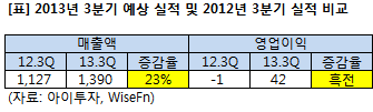 * 매출액, 영업이익, 순이익은 2013년 1월~6월 누적, 단위는 억원, K-IFRS 개별 재무제표 기준.