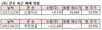 국민연금공단은 지난해 7월 9일 보고서에 종전 6.61%에서 7.61%로 지분을 확대했다고 보고했다. 이는 직전보고서 기준일인 2012년 9월 26일 이후 지난해 4월 23일까지 증가한 지분이다. 이 기간 동안 국민연금은 12만1490주를 매수했다.