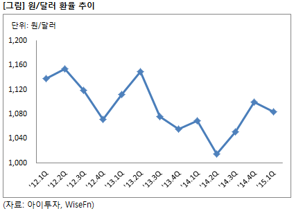 작년 4분기 순이익 증가율이 낮은 이유는 환율 영향으로 보인다. 분기보고서에 따르면 포비스티앤씨는 원/달러 환율이 10% 오를 경우 3205만원 손실이, 반대의 경우 이익이 발생한다. 지난해 2분기까지만 해도 약세를 보이던 환율은 이후 반등, 작년 4분기 원/달러 환율은 전년 동기 대비 4% 오른 1099.2원을 기록했다.