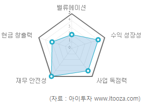 다만 현재 주가수익배수(PER)가 최근 5년 평균 PER 보다 소폭 낮은 점 등이 반영돼 밸류에이션 부문에서 2점을 받았다.