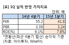 지난 1분기 순이익은 77% 늘어난 25억원이다. 이를 반영한 주가수익배수(PER)는 41.8배다. 주가순자산배수(PBR)는 3.24배, 자기자본이익률(ROE)은 7.8%다.