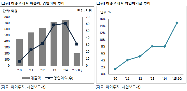 이날 참좋은레져는 지난 1분기 매출액이 207억원으로 잠정 집계됐다고 공시했다. 이는 전년 동기 대비 9.5% 늘어난 수준이다. 영업이익은 76.6% 증가한 31억원을 기록, 영업이익률은 15.0%로 상장 이후 가장 높은 수준을 기록했다.