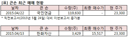 한편, 한화자산운용(이하 한화자산)은 티씨케이 지분을 일부 축소했다고 2015년 4월 14일 금감원 전자공시를 통해 밝혔다. 이에 따르면 보고서 작성기준일인 2015년 4월 13일 기준 지분율은 7.49%로 직전보고서(2014년 10월 10일) 대비 1.03%P(11만9873주) 감소했다. 반면 최근 거래일은 2015년 4월 13일로 3429주를 평균 1만5517원에 장내매수 했다.