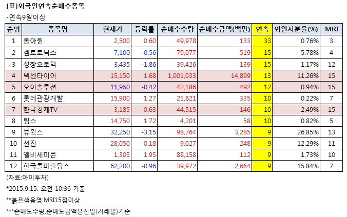 [연속 순매수 종목 매력도] 외인, 뷰웍스 9일째 매수