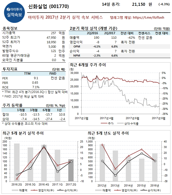 ▷ 신화실업, 2017년 2분기 확정(개별)