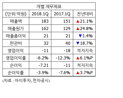 파세코7,860원, ▼-20원, -0.25%의 1분기 개별기준 영업이익이 -11억4614만원으로 전년 동기 -18억6746만원에 이어 적자를 지속했다.15일 전자공시에 따르면 파세코의 1분기 매출액은 183억3349만원으로 전년 동기 151억3851만원 대비 21.1% 증가했고, 순이익은 -7억2073만원으로 전년 동기 -11억6305만원에 이어 적자를 지속했다.