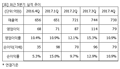 지난 15일 주가는 전일대비 1.48% 하락한 10만100원으로 마감했다. 전일 종가 기준 주가수익배수(PER)는 23.7배, 주가순자산배수(PBR)는 6.50배, 자기자본이익률(ROE)은 27.4%다.