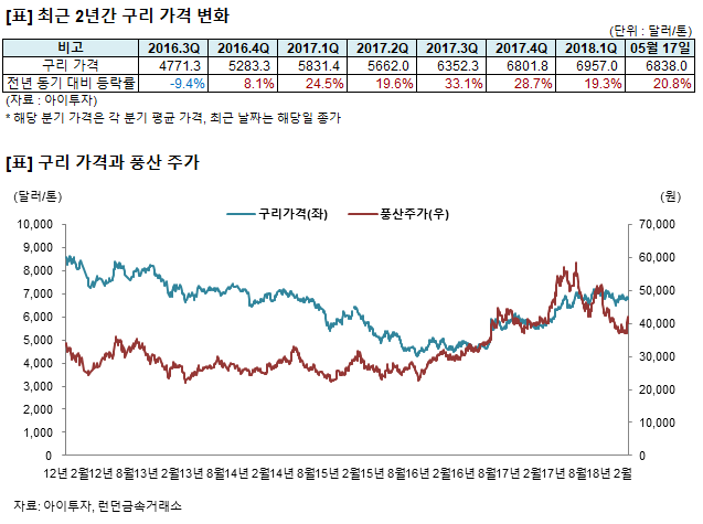 런던금속거래소(LME) 기준 구리 현물 가격은 17일(현지시각) 전일 대비 0.95%(64.5달러) 오른 톤당 6838달러를 기록했다.