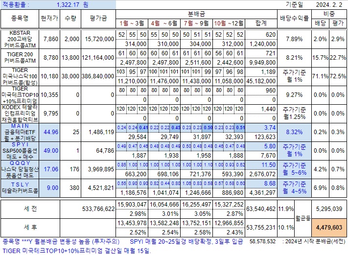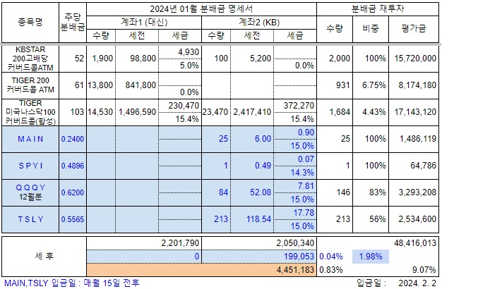 두종목의 첫 분배금실적을 확인한 후 포트폴리오 비중조정 생각하고 있습니다.