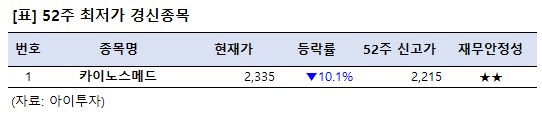 [52주 최저가] 카이노스메드 10.1%↓, 1개 종목 장중 신저가